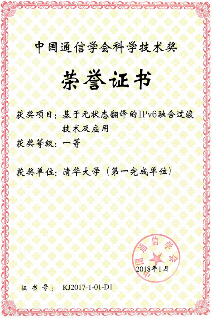 研究方向:網絡體系結構、網絡測量及網絡應用 在IPv6網絡體系結構及前沿技術方面,負責、參與國家科技部、教育部、發改委、國際合作項目10余項,發表學術論文20余篇 曾獲北京市科技進步獎一等獎 中國通信學會科學技術獎一等獎 在無狀態IPv4/IPv6翻譯技術的研究方面,作為第1、2作者已發布互聯網國際標準IETF RFC 9項標準